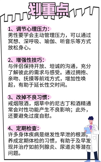 除了积极治疗,我们在日常生活中也可以通过一些方法来降低早泄发生的概率。